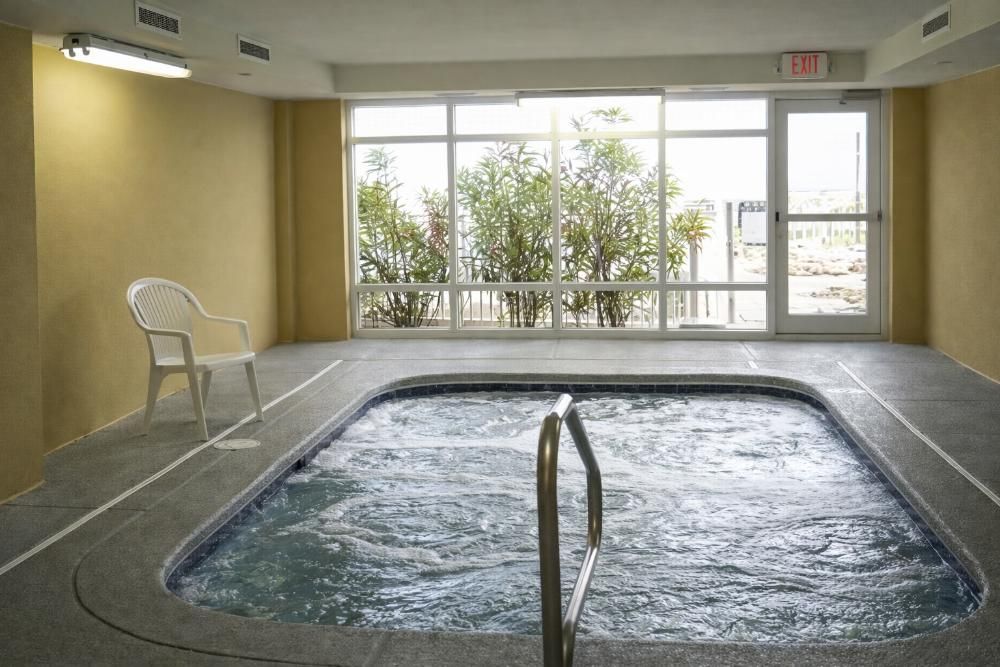 Our two bedroom, two bath, oceanfront condo rental in Florida at the Twin Palms Resort features a spacious floor plan, nine foot ceilings, crown molding, granite kitchen counter tops, luxurious custom cabinetry, ceramic tile floors, cultured marble vanity tops and an over-sized open balcony. It also offers covered parking, lush landscaping, a heated pool, sauna, two hot tubs, steam room and an exercise room.